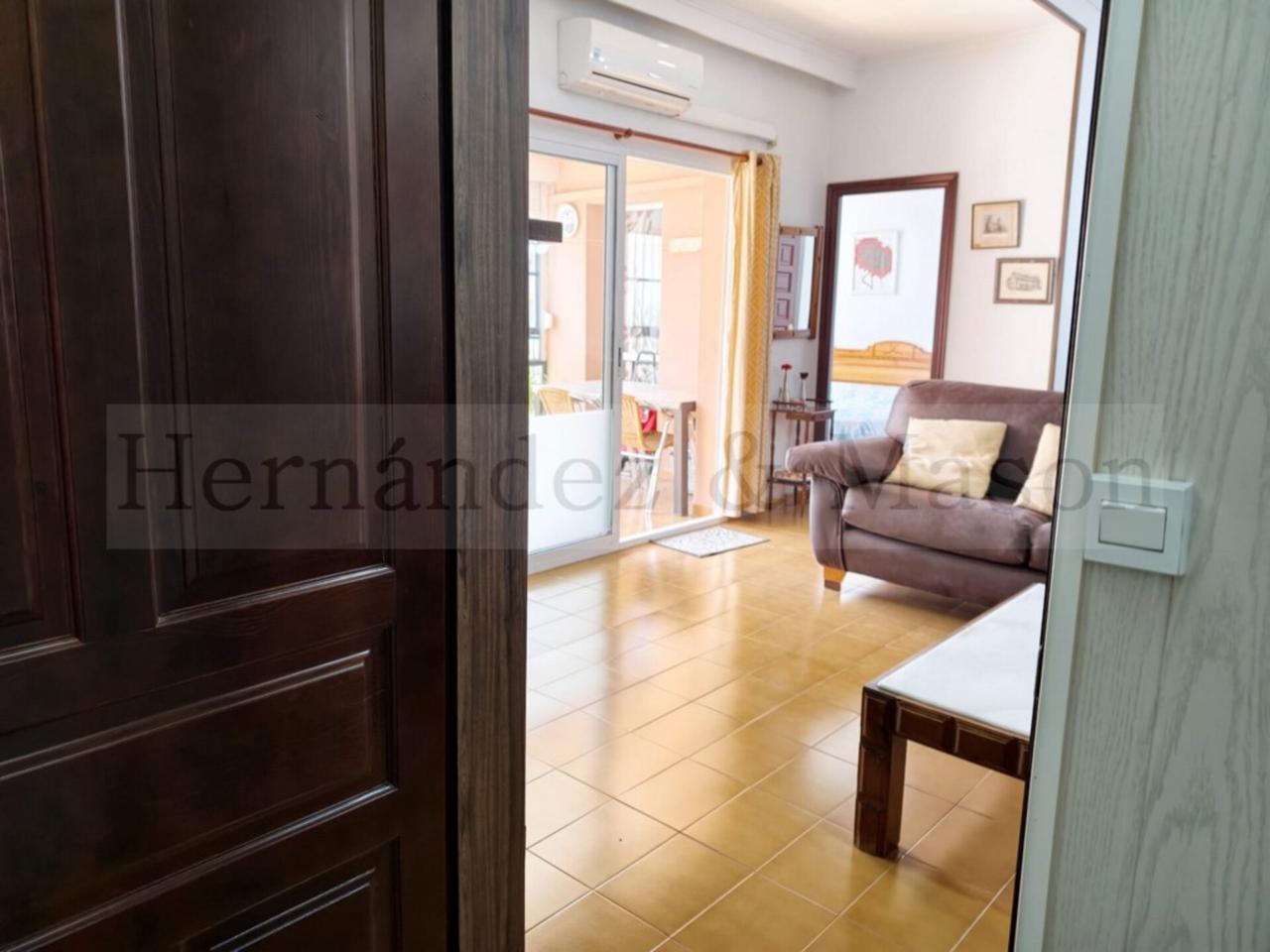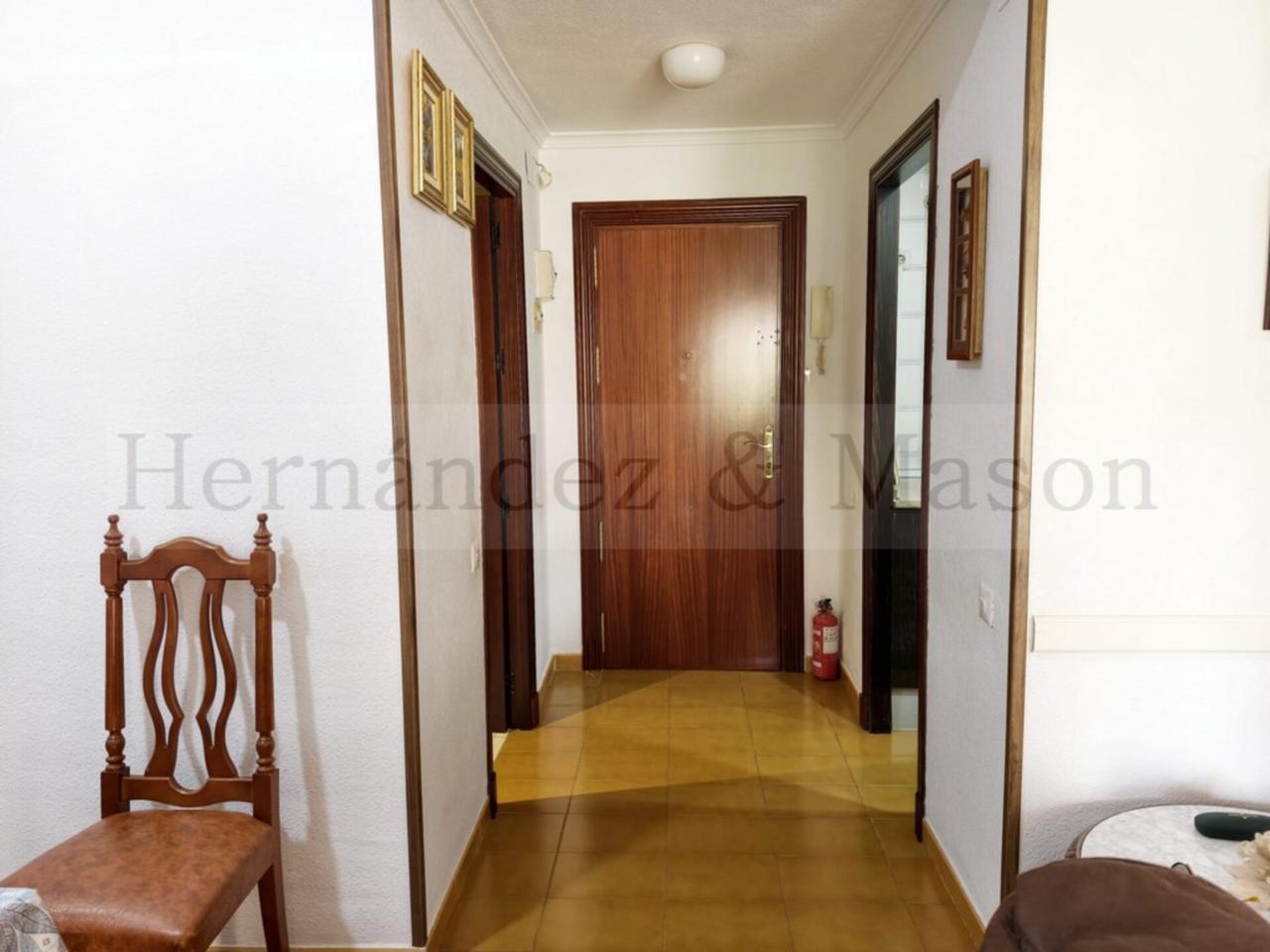 El piso cuenta con una distribución muy funcional. Dispone de dos habitaciones principales y una tercera estancia adicional, actualmente habilitada en el salón mediante un elegante mueble de madera, ideal como dormitorio extra, despacho o zona de invitados. Este espacio puede retirarse fácilmente para ampliar el salón si se desea.